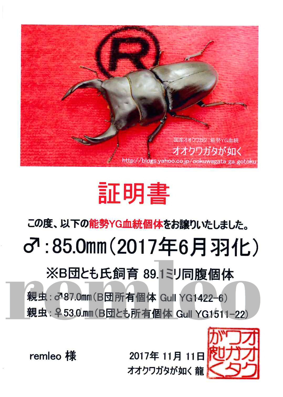 ♂85.2(銚子オオクワ様2014YG59)× ♀56.0(銚子オオクワ様2014YG78)